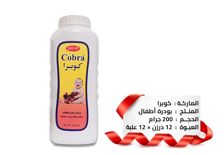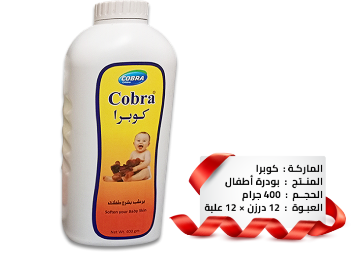 بودرة كوبرا للأطفال هي منتج مصنوع من مادة التلك الناعمة والمرتبطة بمادة رابطة، مما يقلل من الغبار الناتج عن استخدامها. يمكن استخدام هذه البودرة بعدة طرق مختلفة في مجالات الجمال، وهي تعد من العناصر متعددة الأغراض والاقتصادية. تم تصميم هذه البودرة خصيصًا لتخفيف أعراض الحفاظ على الأطفال، وتوفر الراحة والحماية الناعمة للبشرة الحساسة